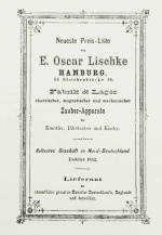 Einer der ersten Zauberhändler in Deutschland, der eine gedruckte Angebotsliste herausbrachte, war E. Oscar Lischke, der 1852 sein Zaubegeschäft in Hamburg eröffnete.